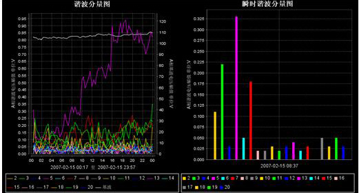 系統(tǒng)能監(jiān)測(cè)各通道多達(dá)50次諧波和50次間諧波含量、幅值、角度、功率等數(shù)據(jù),并進(jìn)行本地和數(shù)據(jù)庫(kù)存儲(chǔ),隨時(shí)進(jìn)行調(diào)出以表格或曲線(xiàn)方式進(jìn)行分析。